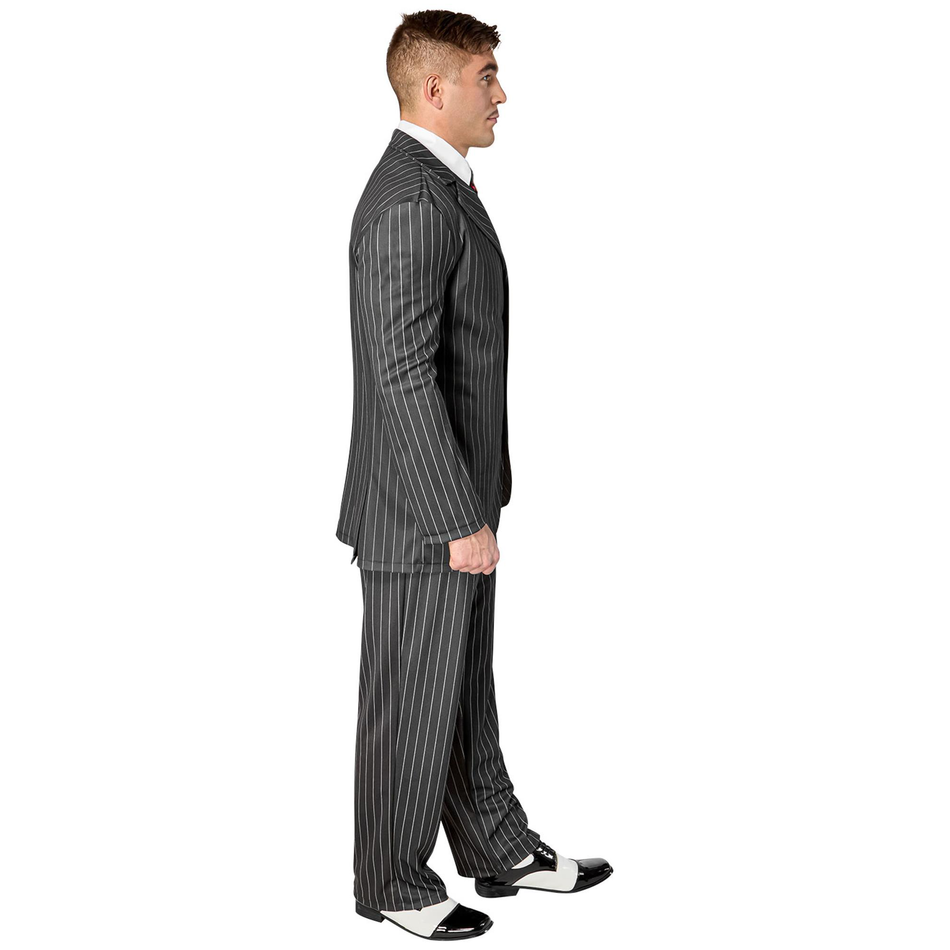 Includes: Shirt with attached tie, jacket with attached vest, and pants.