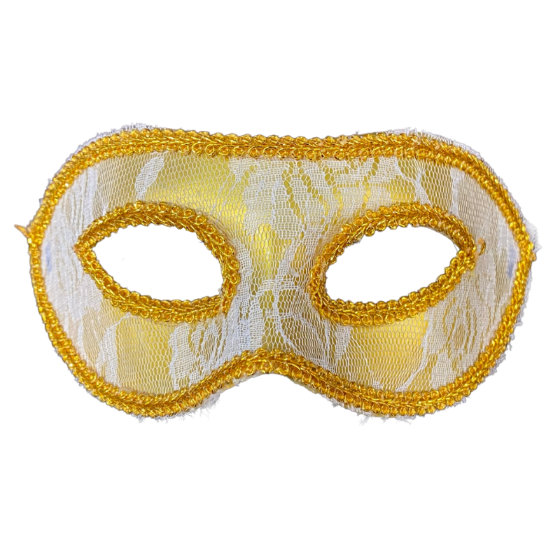 Gold mask with white lace overlay and gold trim.