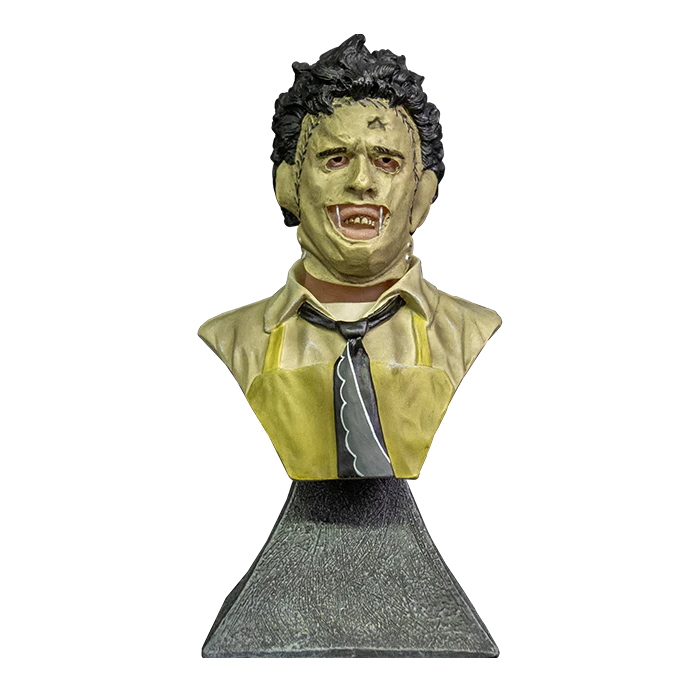 Trick or Treat Studiosis proud to present the officially licensed The Texas Chainsaw Massacre - Leatherface - Mini Bust. Sculpted with every detail of Leatherface represented, this resin bust is meticulously painted to perfection. Attached to a bust stand so that you can display it in your home, office or anywhere your monstrous heart desires. Arrives in a beautiful collector's window box.